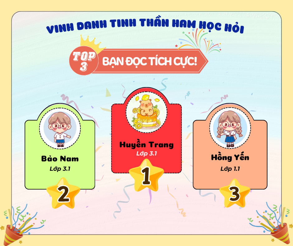 - Hạng 1: Hoàng Huyền Trang – Lớp 3.1