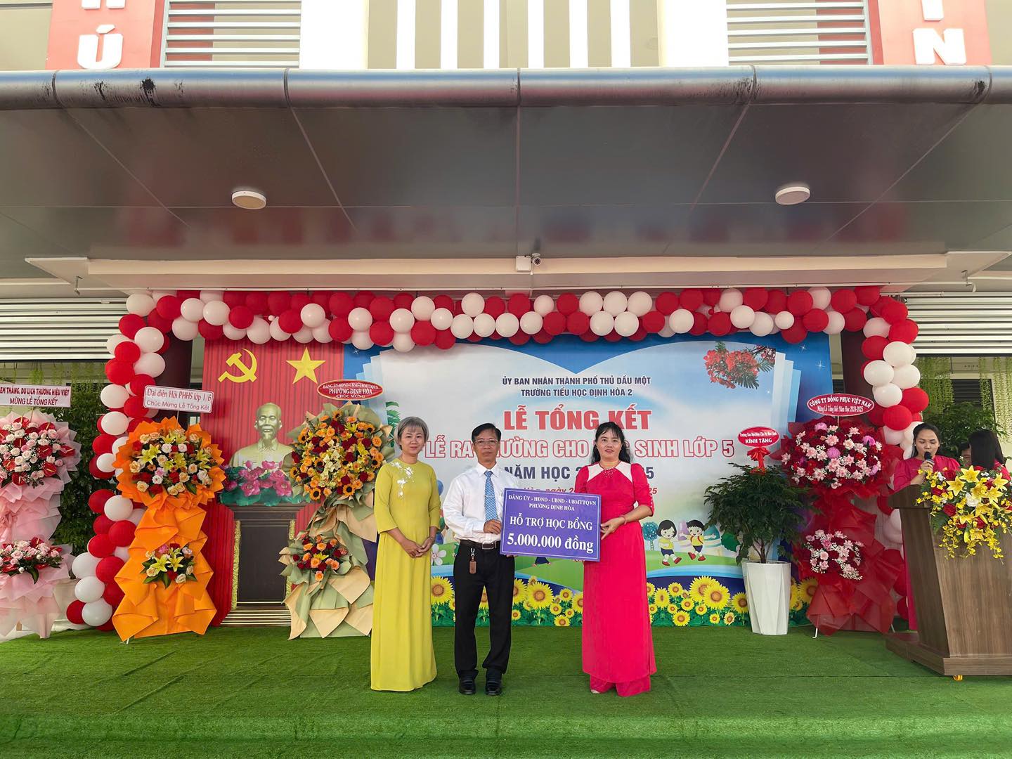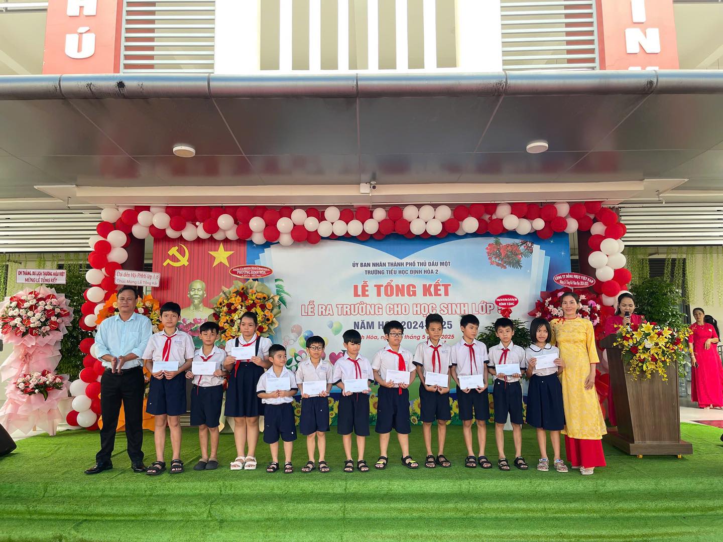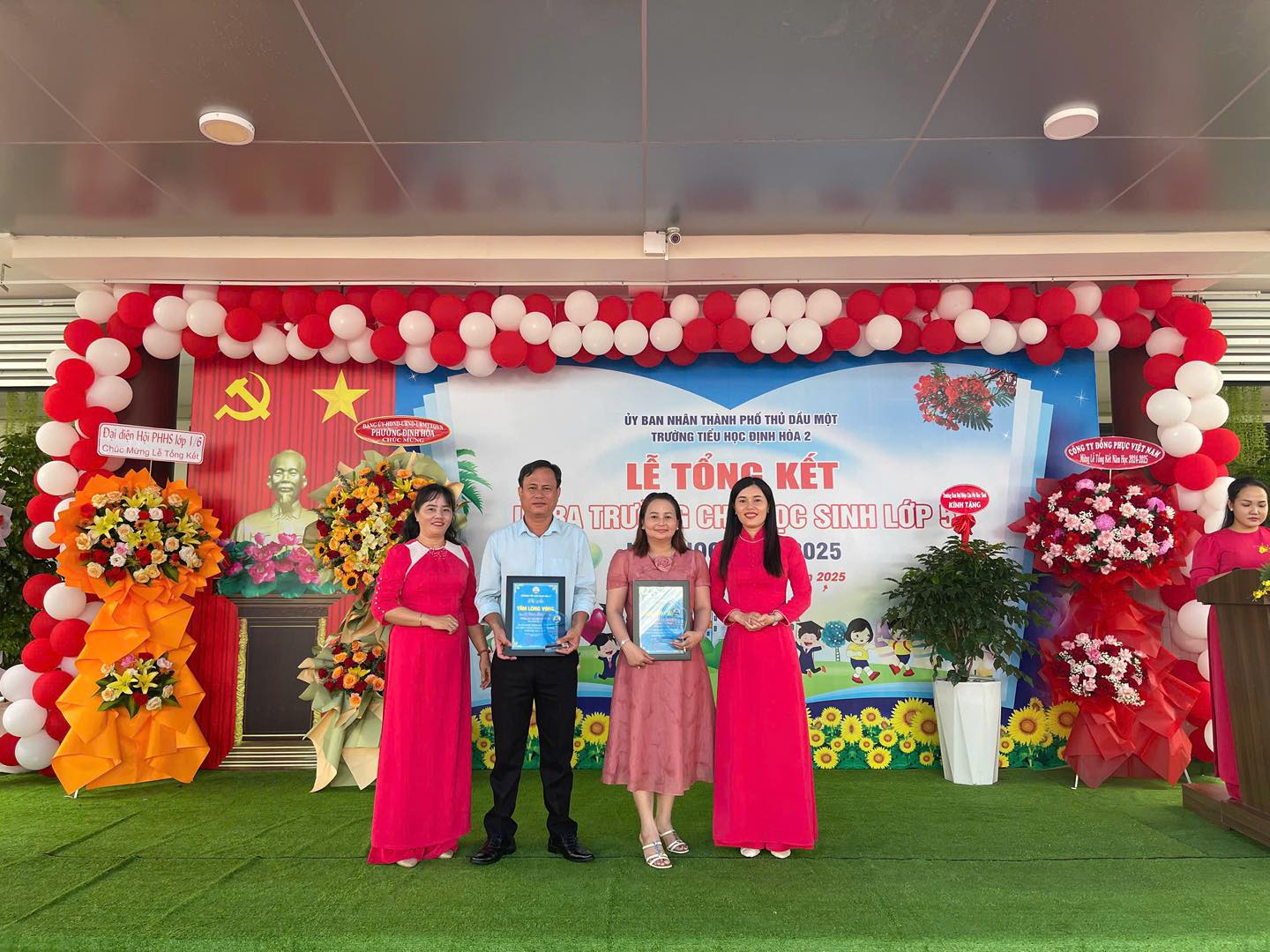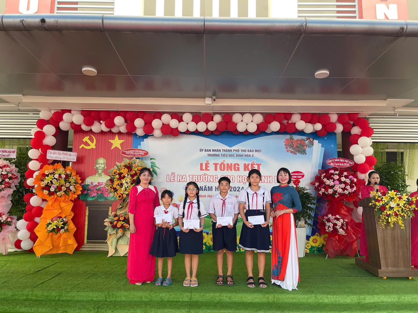 Dưới ánh nắng đầu hè rực rỡ, sáng ngày 26/05/2025, trường Tiểu học Định Hòa 2 (TP. Thủ Dầu Một) đã long trọng tổ chức Lễ Tổng kết năm học 2024–2025 và Lễ ra trường cho học sinh Lớp 5. Buổi lễ diễn ra trong không khí trang trọng, ấm áp, là dịp để thầy trò nhà trường cùng nhìn lại hành trình nỗ lực không ngừng nghỉ suốt một năm học vừa qua.