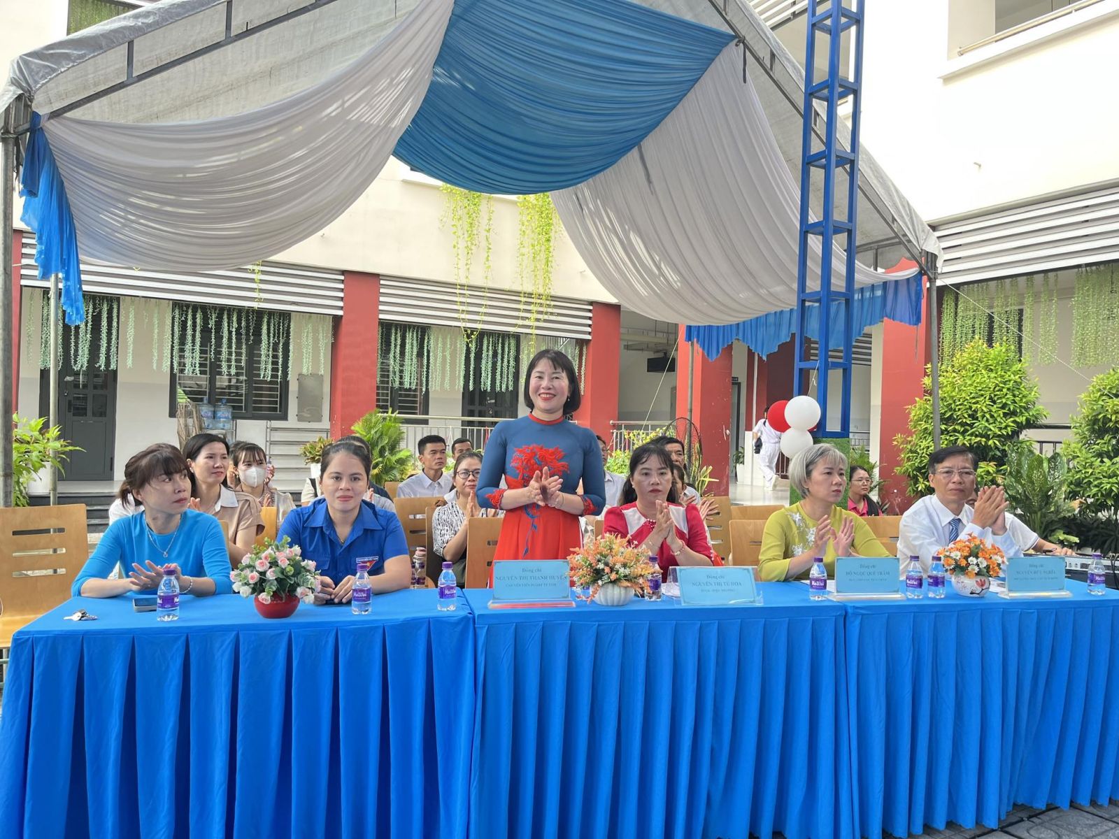 Tham dự buổi lễ có bà Nguyễn Thị Thanh Huyền – Chuyên viên Phòng Giáo dục và Đào tạo thành phố; lãnh đạo phường Định Hòa; đại diện các ban ngành, đoàn thể địa phương; Ban đại diện cha mẹ học sinh cùng toàn thể cán bộ, giáo viên và học sinh nhà trường.
